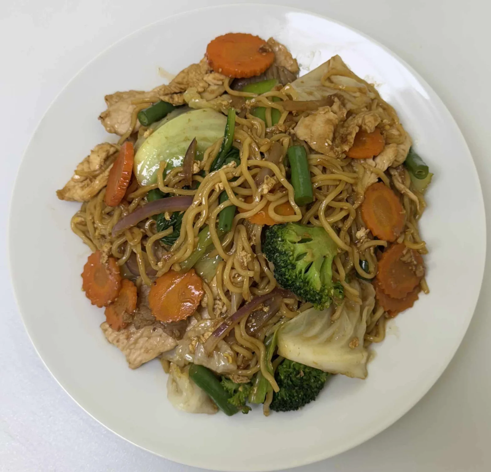 carrots, green bean, cabbage, Bok choy, sprouts, egg and meat choice